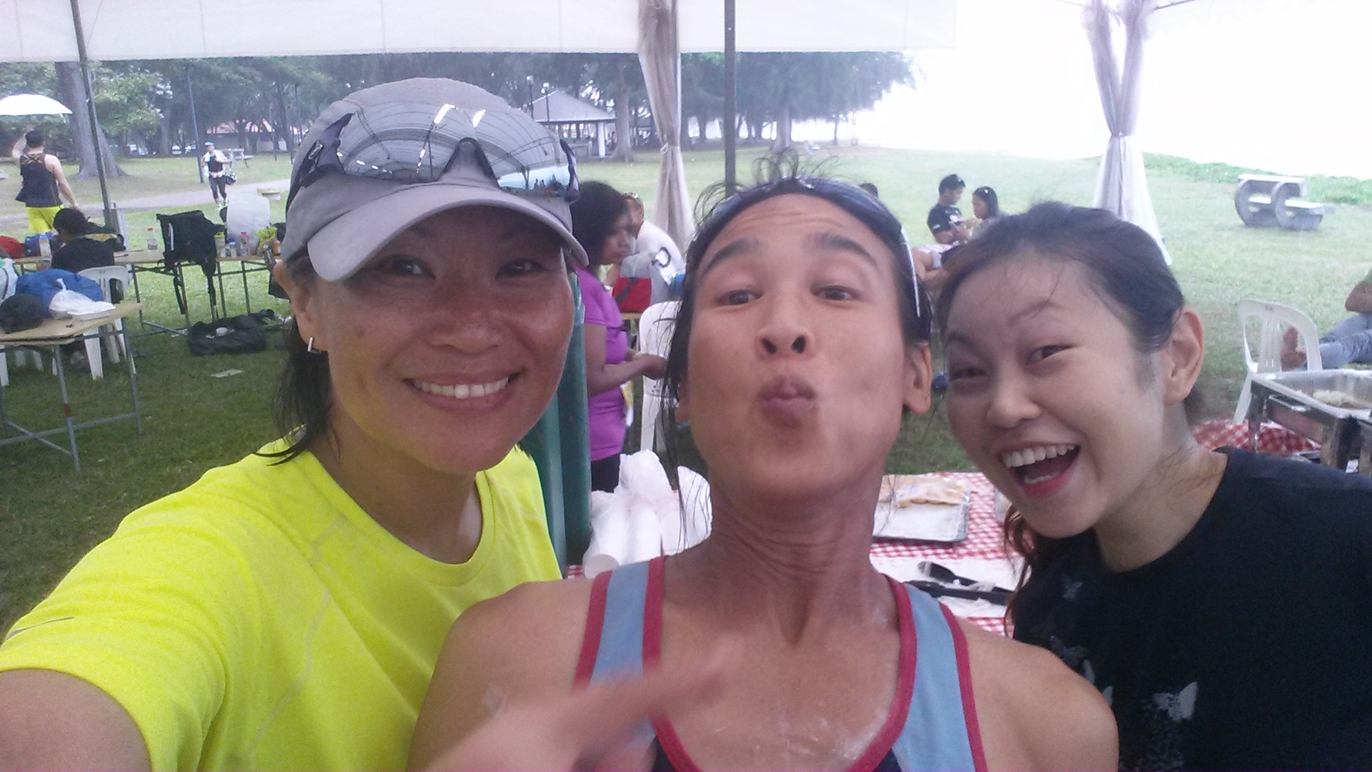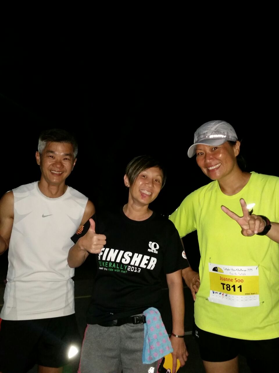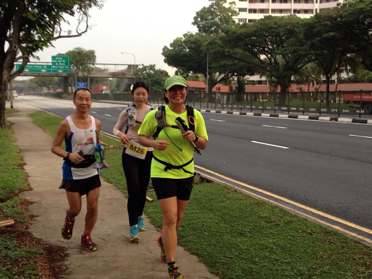 Mak and Beeli (middle) paced me for 10km, helped me to complete 35km distance at about 2:30am. (Photo credit: Jacqueline Oon)