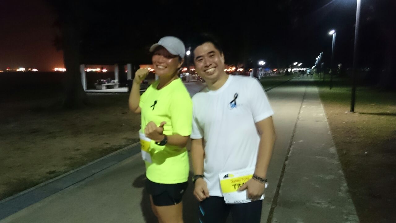 Daniel and I walked for 5km, it helped to release the fatigue in my legs. 40km for me, and 30km for Daniel – a first for Daniel, his longest recorded distance was our 14km training run. (Photo taken at our first 10km, credit: Adeline Kea)