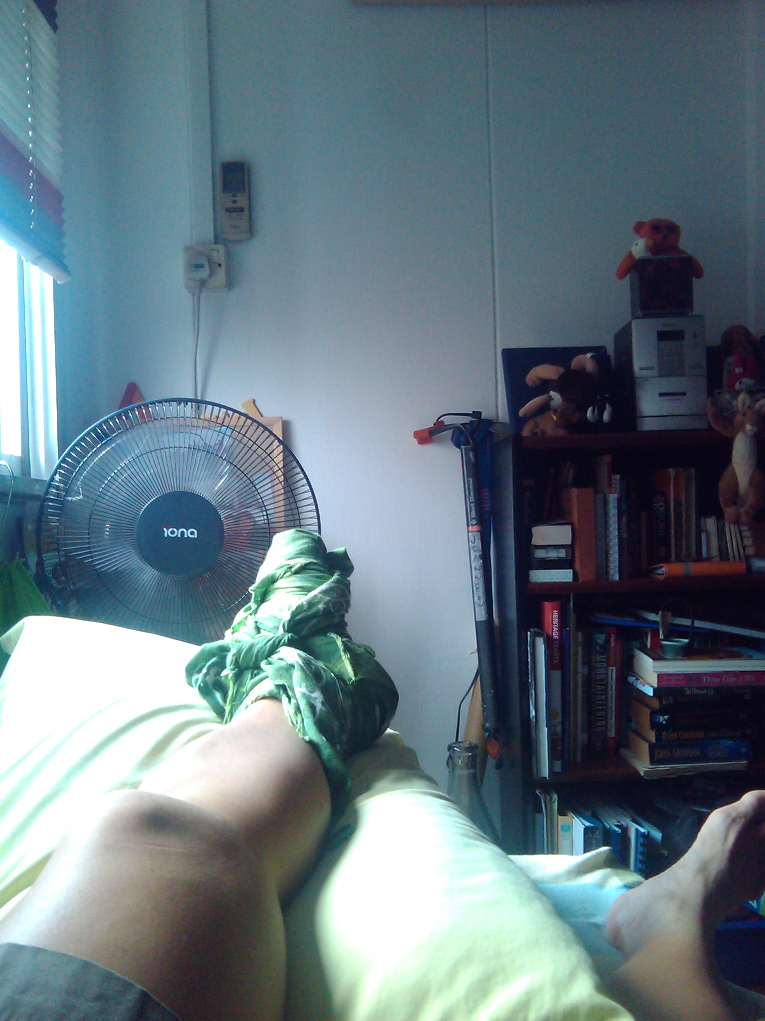It has been more than 24hrs since the pain came on. The pain hasn’t gone lesser, and I am still unable to walk with the injured leg. Last evening, a concerned friend (Joe), we share the same birthday and same chinese animal horoscope but 12 yrs a part (ok, nothing to do with anything haha), sent me a set of his used crutches. With the crutches, I can move around in my flat without having to hop and risk injuring the good leg.